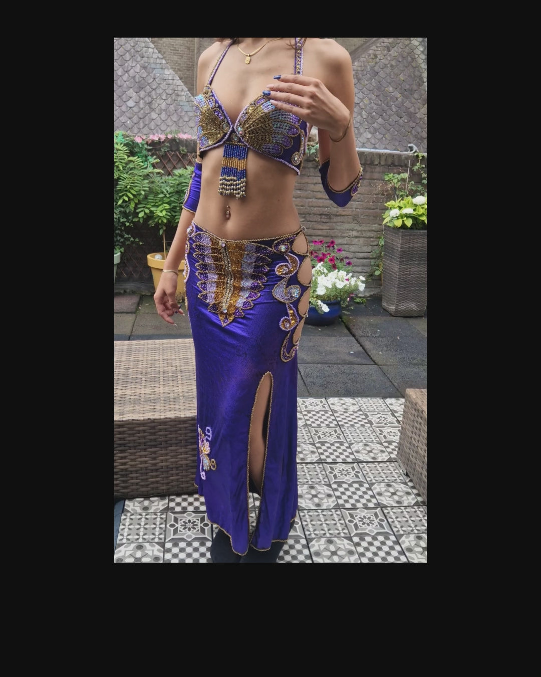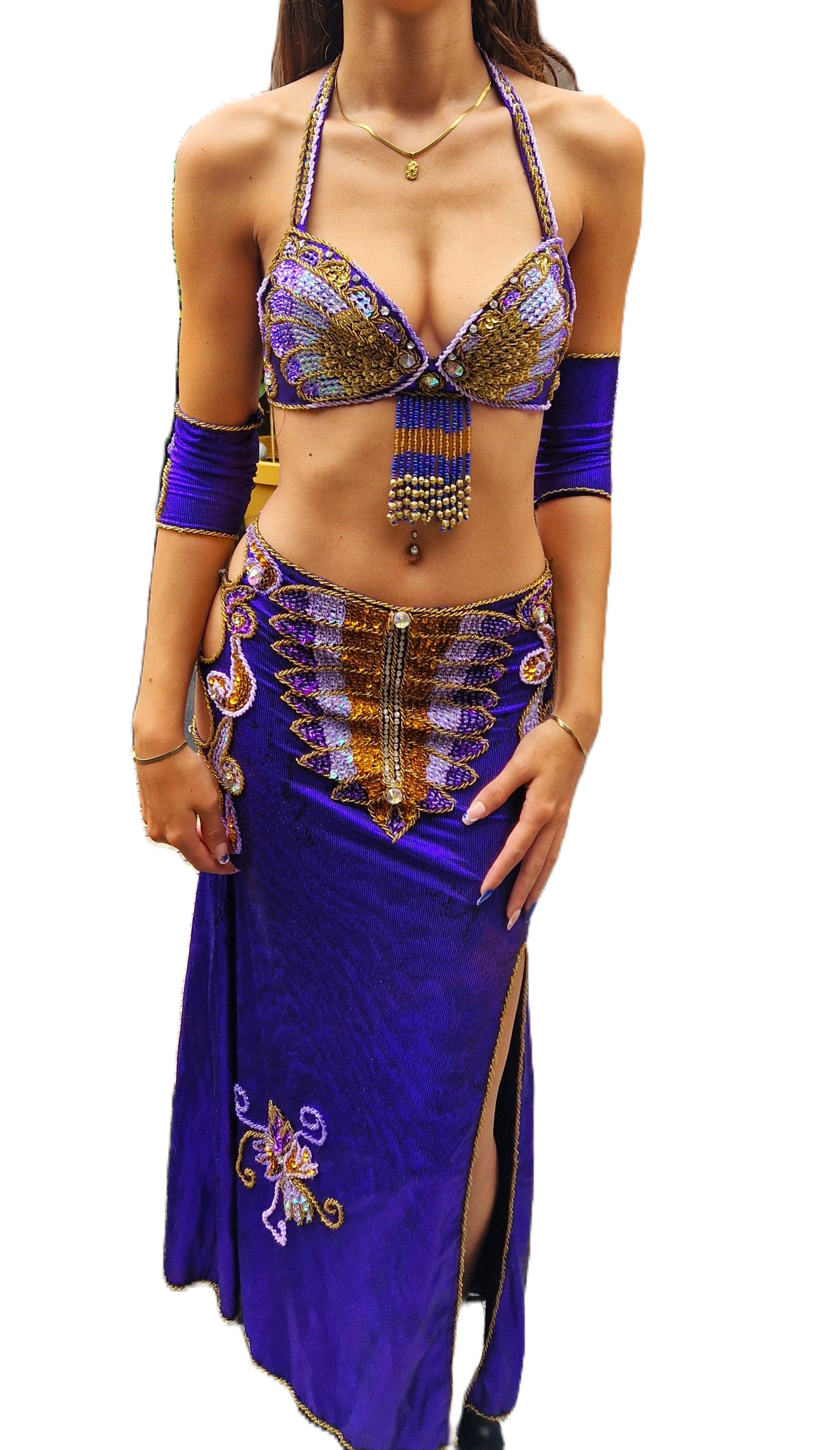 Wunderschön gearbeitetes Bauchtanzkostüm in Lila.