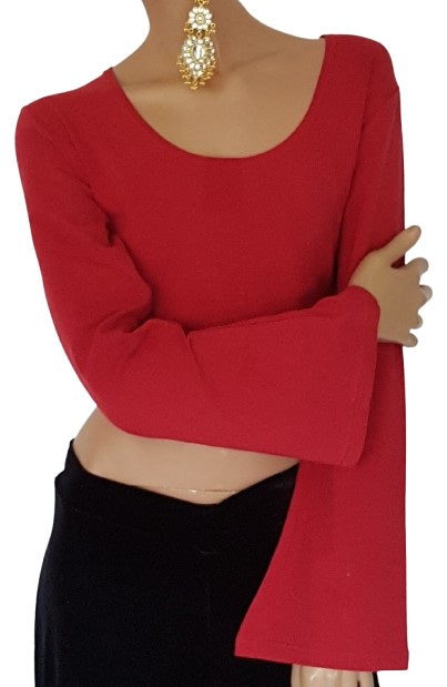Bauchtanz-Top in Burgunderrot mit Trompetenärmeln