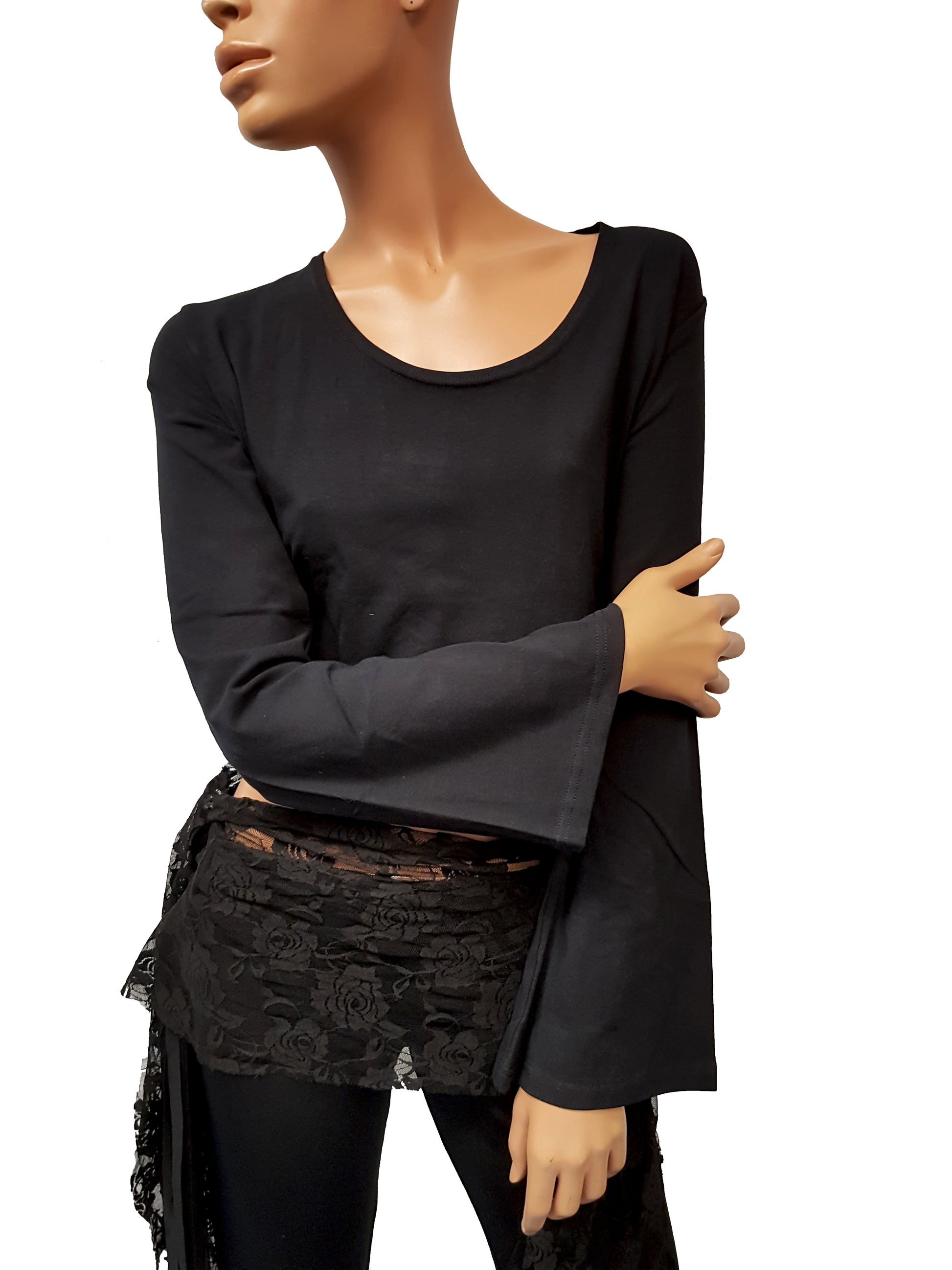 Bauchtanz-Top in Schwarz mit Trompetenärmeln