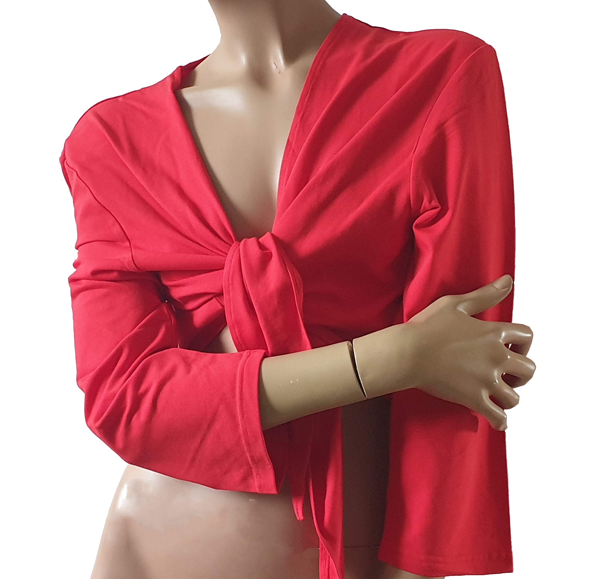 Bauchtanz -Top zum Binden in Rot mit Dreiviertelärmeln.