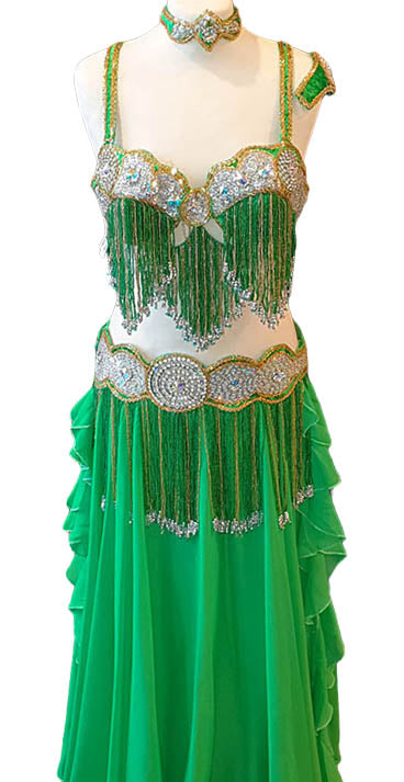 Bauchtanzkostüm grün - Gürtel und BH, mit Schmuck