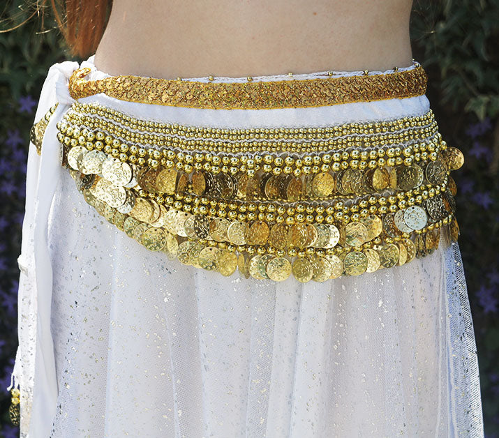 Bauchtanz-Hüfttuch in Weiß mit goldenem Band