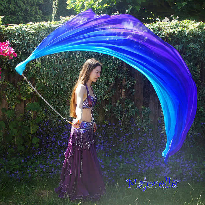 SSeiden Bauchtanz Poi/Voi mit Seidenschleier in lila blau türkis
