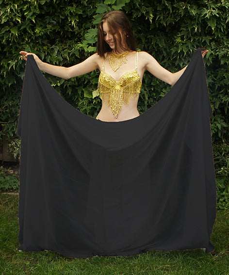 Schwarzer Bauchtanzschleier mit Goldfaden