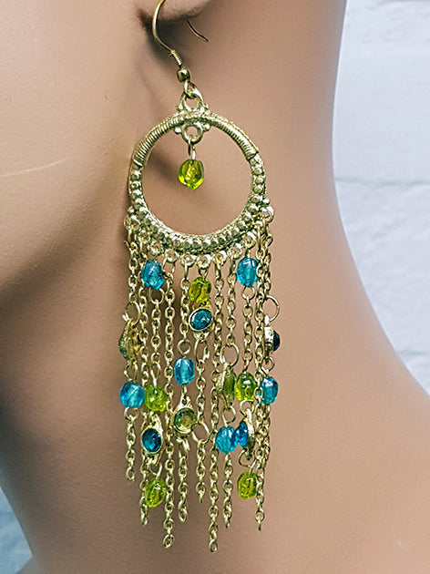 Goldfarbene Ohrringe mit Limettengrün/türkis