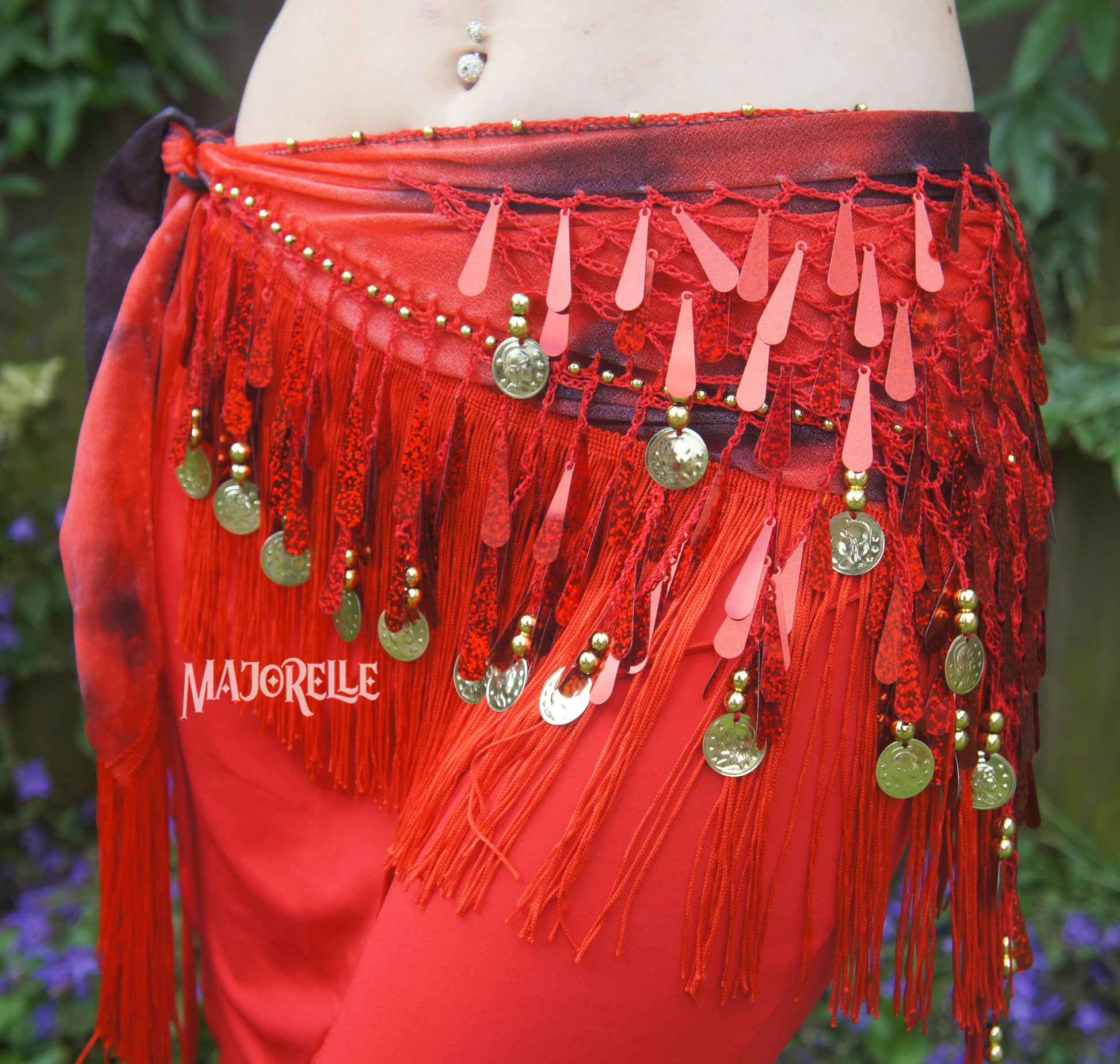 Hüfttuch mit tropfenförmigen Pailletten in Rot.