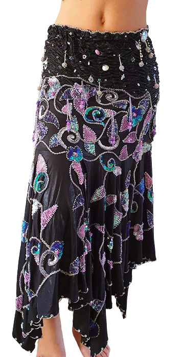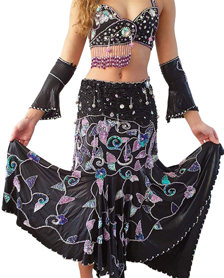 Bauchtanzrock / Bauchtanzkostüm Elmira in Schwarz mit Flieder