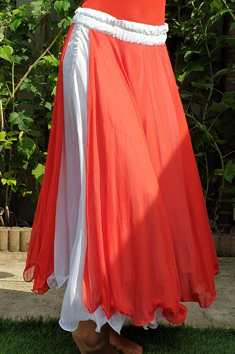 Rock in 2 Lagen, die obere rote Lage fällt über die untere. weiße Schicht.