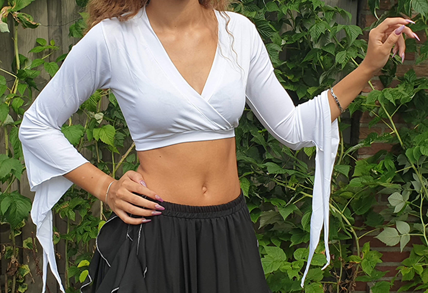 Weißes Top aus Polyester mit Dreiviertelärmeln