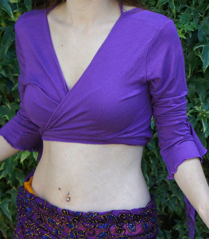 Süßes lila Bindetop aus elastischem Jersey mit Schmetterlingsärmeln.