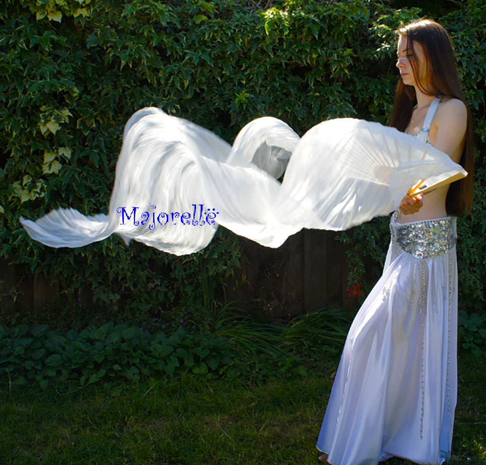Wunderschöne Bauchtanz-Schleierfächer aus Seide in Weiß