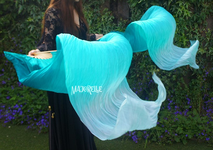 Seiden Schleierfächer in Pfauengrün mit Farbverlauf