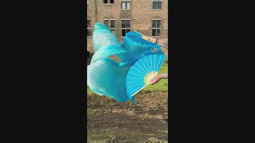 Seidenschleierfächer in Aqua Farbverlauf 150cm