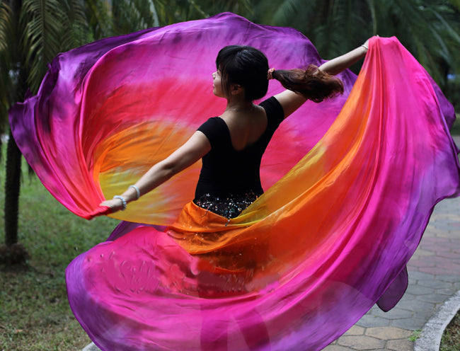 Halbrunder Seidenschleier in Gelb, Orange, Rot, Fuchsia, Lila